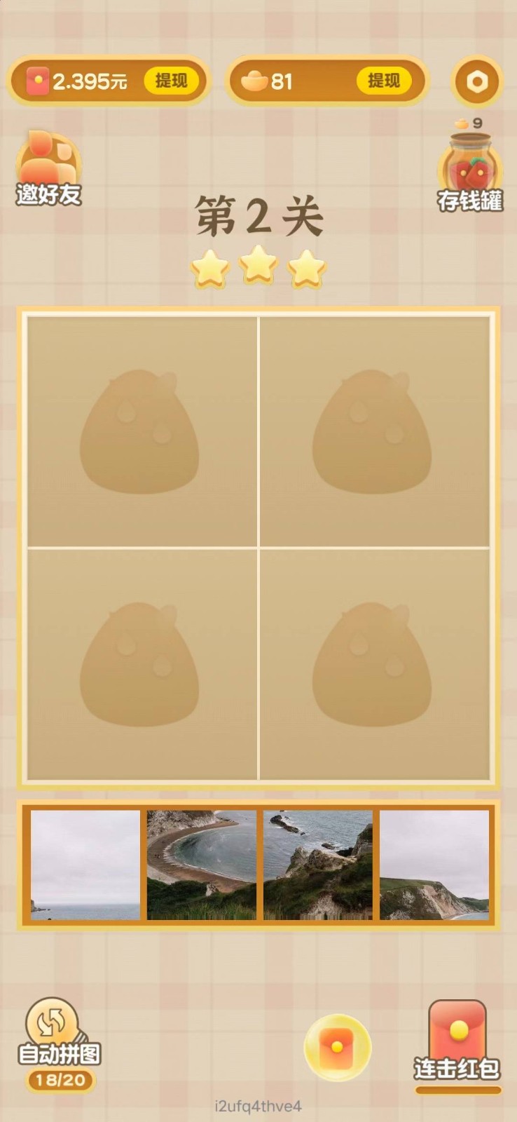 1.将散乱的拼图拼凑完整就可以成功通关,通关就有红包可以领取