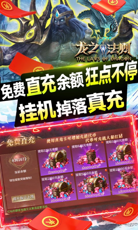 龙之法则GM无限提充是一款3D魔幻动作手游,在龙之法则GM无限提充中,玩家上线就送30万元真充卡和VIP20,还有刷充科技可以免费直购直充,新增GM福利登录就能激活,永久神权至尊打金,超多福利登录就白嫖