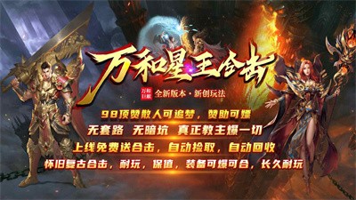 万和星王合击是一款1.80复古合击传奇手游,长久耐玩,简单易上手,小怪,boss爆一切,白嫖可终极,散人轻松逆袭。在万和星王合击中,会员可白嫖,无隐藏消费,一切消费一目了然。