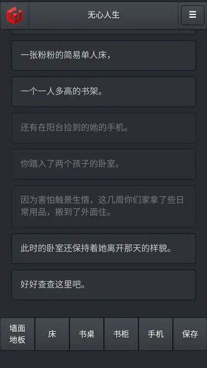 无心人生是一款文字剧情解谜游戏,在无心人生中采用第二人称角度讲述故事,你在游戏中的身份是一位母亲,为调查离奇自杀而展开搜索和解谜,通过剧情解谜给玩家带来多个彩蛋和结局,同时也呼吁爱与尊重