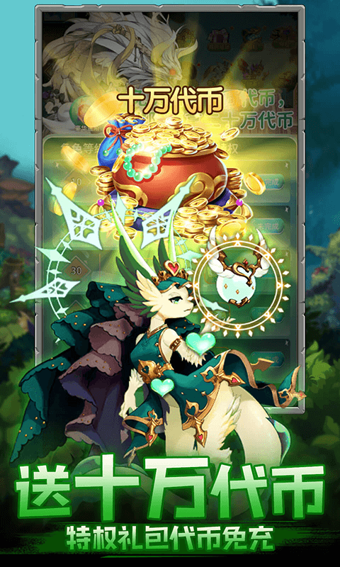 《神兽连萌》是一款休闲养成的放置卡牌手游,游戏上线就送VIP12、10w钻石、500w金币、1000代币、万元充值卡,活动免费送20星魔龙,并可进行全阵营转换,轻松适配所有阵容!升级免费送十万代币,海量礼包、特权可代币免费激活!通关送1000连抽高招,轻松获取海量神龙!在这里你将扮演强大的驯龙师,再强大的神龙都会臣服于你。上百种不同特征属性的神龙供你挑选培育,每只神龙都有初阶、中阶、高阶三种不同形态,会从可爱的幼龙进化成霸气威武的神龙!