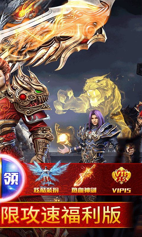 霸刀传奇超变1元送万充是一款正版三职业攻速传奇手游,在霸刀传奇超变1元送万充中,玩家上线就送万元红包奖励,另外还送传世至宝、神器、炫彩神羽、热血神剑、美女图鉴等好礼,每日在线无限送元宝,刀刀光柱爆极品