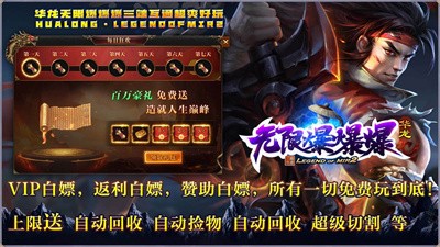 华龙无限爆爆爆是一款1.95单职业传奇手游,全新版本,火力全开,散人轻松逆袭,满屏光柱,自动拾取,自动回收免费领。在华龙无限爆爆爆中,特色托管系统,解放双手,轻松挂机,收集各种资源。