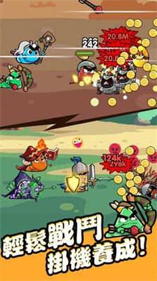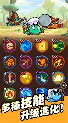 1.在不同的关卡中进行战斗冒险,放置战斗冒险,收集各种各样的技能,升级进化,获得更强的力量。