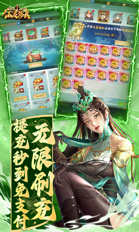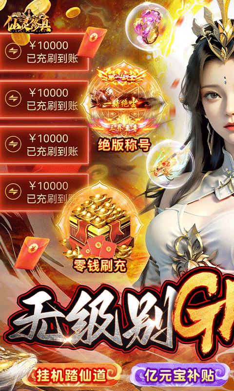 仙灵修真GM特权刷充是一款可以养鲲的仙侠手游,在仙灵修真GM特权刷充中,玩家上线就可以领取绝版称号、万元真充卡和至尊VIP,天天上线还有百抽奖励,每天免费点充,还有零钱刷冲工具白嫖到爽