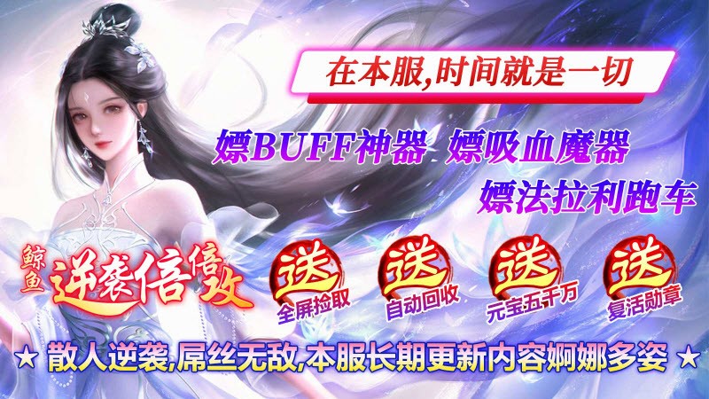 鲸鱼逆袭倍倍攻四一款195版本的无限刀传奇游戏。在鲸鱼逆袭倍倍攻中,玩家上线就能领取神装神器,还有各种叠BUFF的神器可以选择,礼包那个不停,散人首选,自由交易不是梦。