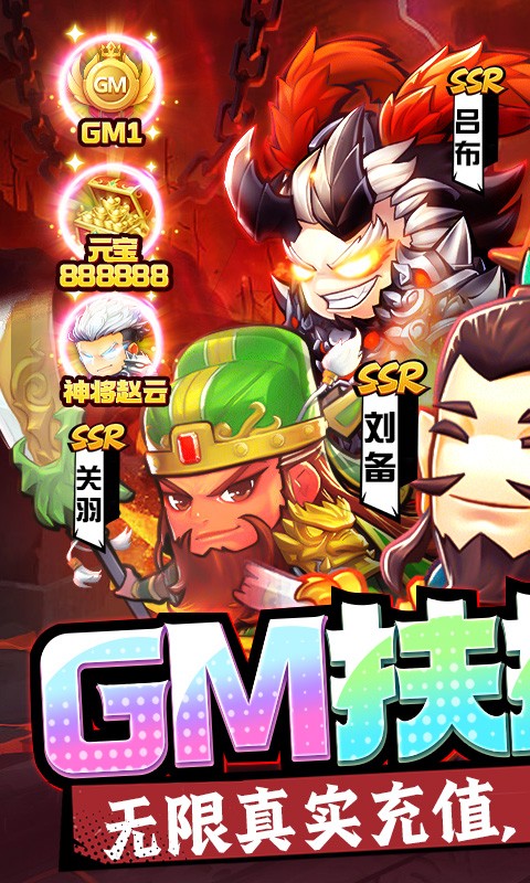 群英三国送GM扶持刷充是一款三国挂机卡牌手游,在群英三国送GM扶持刷充中,开局就送GM特权和VIP20,还有千元充值额度卡、连抽以及海量资源可以免费领取,无限刷冲所有充值全部免费,登录还送满星神将和十万充值卡