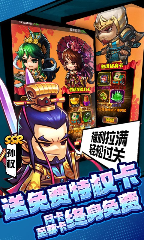 超爽体验的三国卡牌养成手游《群英三国》强势来袭,游戏画面丰富美好,色彩鲜明。融合卡牌游戏经典的同时还包含了丰富的游戏内容,武将选择,阵容搭配充满策略性。版本福利爽翻天,开局就送GM工具,超神将、传说神将、元宝、材料统统免费送,充值档位、豪华补给特权、终身特权、海量礼包统统免费买,强势福利带你重温三国豪情的年代,快来与三国名将一起过关斩将、争霸天下。
