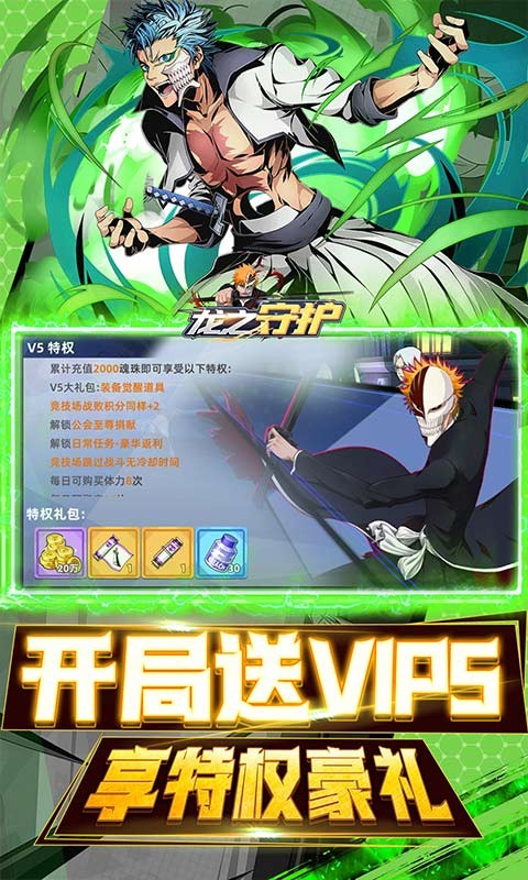 龙之守护以经典漫画作品《死神》原著剧情为游戏背景的卡牌类游戏,开局直升VIP5,送毕业满星黑崎一护假面,开局福利应有尽有,十年经典永不完结在此带领玩家们感受死神世界的热血经典,极度真实还原动漫人物战斗表现,超华丽的招式攻击享受最真实的打击画面,拥有丰富的玩法元素、不肝不氪的游戏特点以及精彩刺激的战斗场景,全方位的为你提供作为独到的游戏体验。