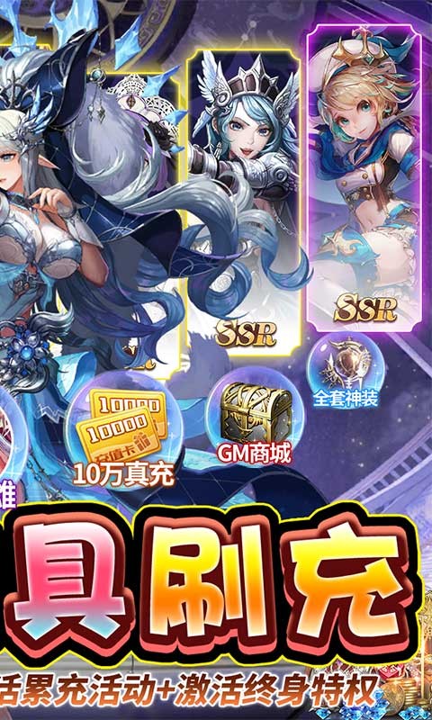 1、创角即送SVIP10、钻石888888、10000元充值卡包、UR英雄、突破石、英雄经验书、英雄技能书