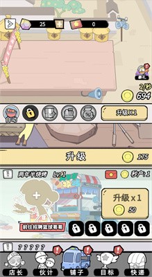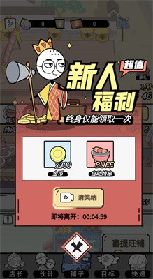 2.使用金币对店铺进行升级,解锁更多的食物,提升秒产的金币,让你能更快地解锁新的店铺进行经营。