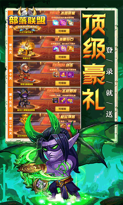 部落联盟0.1折是一款魔幻策略塔防手游,在部落联盟0.1折中,玩家登录就送S级英雄,前期开荒无压力,完成七日签到还有超多资源奖励和英雄可以领取,游戏内所有充值仅需0.1折,648充值6.48就搞定