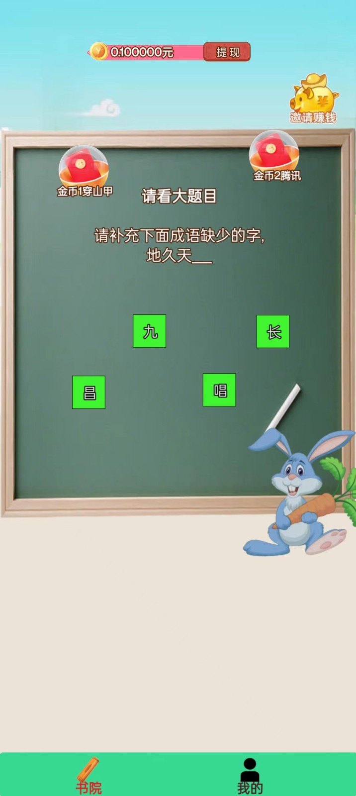 1.填字答题闯关,将成语空缺的部分天不完整即可领取关卡红包奖励
