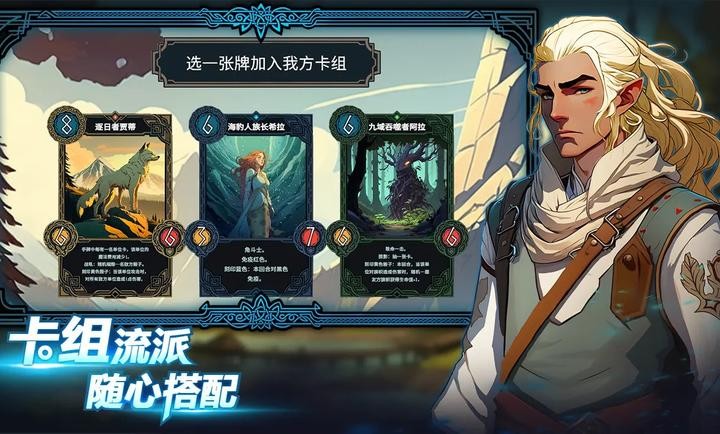 2.穿越北境,收集和招募来自不同阵营的伙伴,将他们纳入自己的麾下,组建独特的牌组。