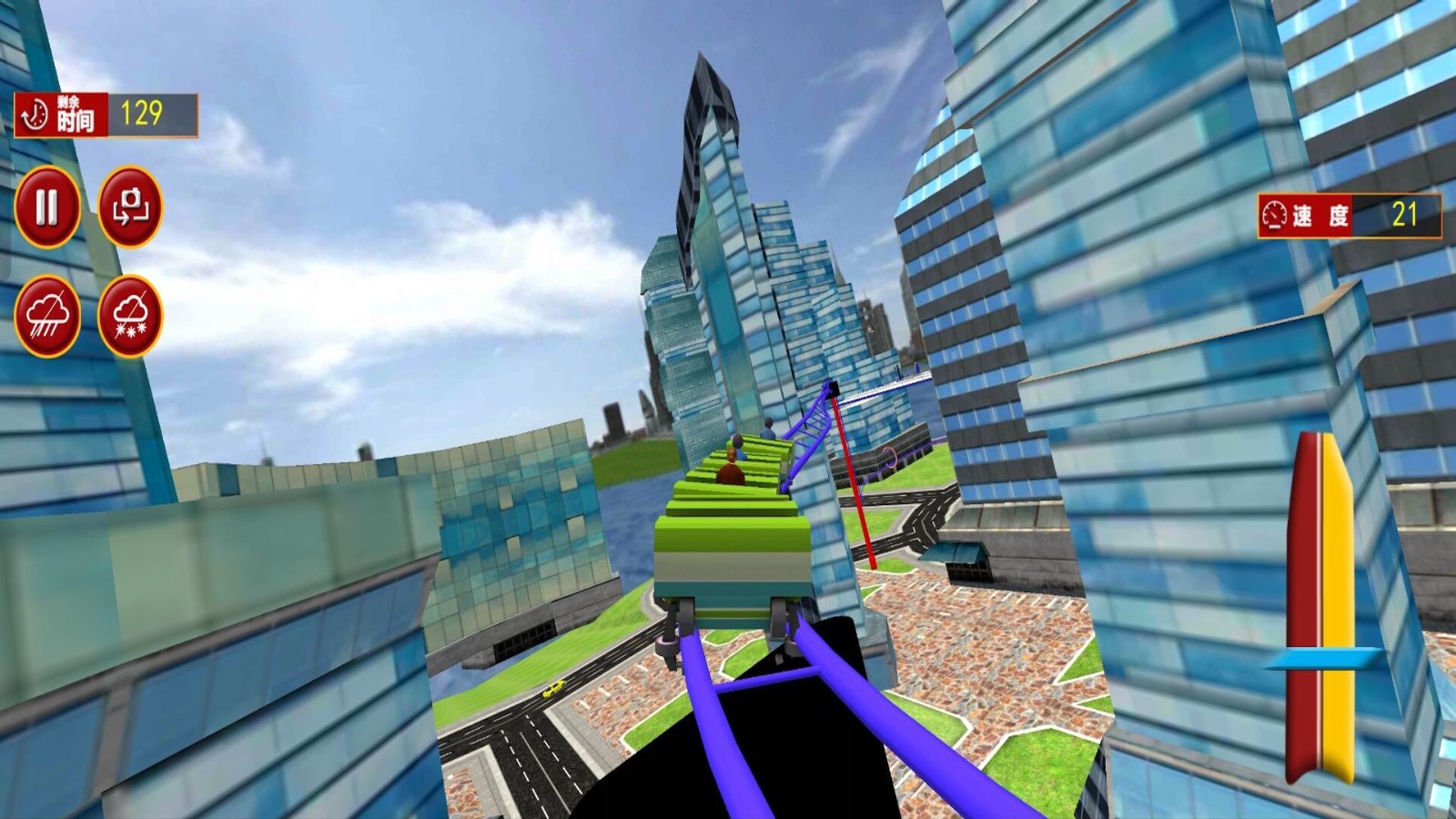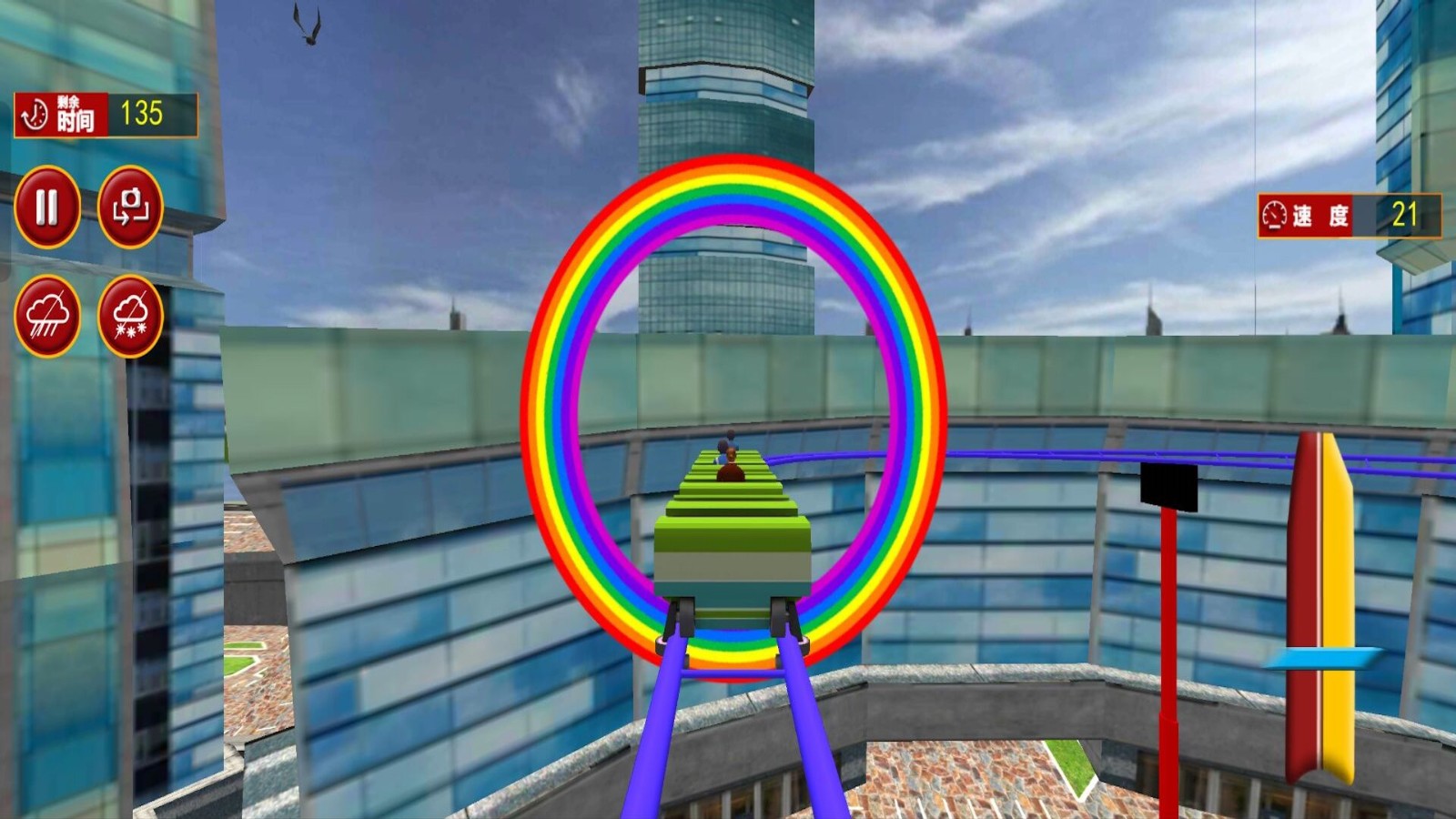 3.在乘坐过山车的过程中,玩家将感受到真实的速度和重力,以选择不同的视角游玩吧。