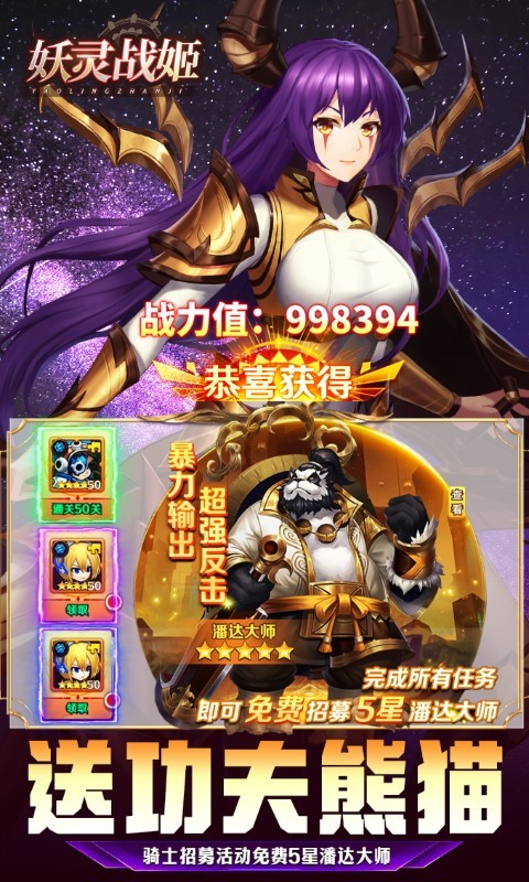 ★新服骑士招募,完成所有任务即可免费招募5星潘达大师