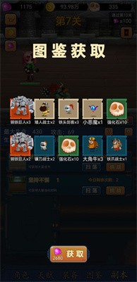 3.游戏中还有许多装备和图鉴等你来点亮,不断闯关挑战,轻松放置挂机,享受全新冒险。