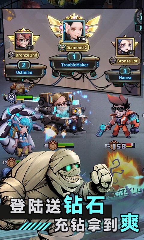太空奇兵0.1折是一款末日废土风格的放置卡牌手游,在太空奇兵0.1折中,玩家上线就送百抽金色招募卡,还有VIP和海量金币,另外登录还送极品SSR,更有万元红包免费领,百万钻石领到爽