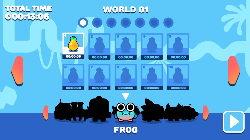 2.可以利用关卡中的各种地形来摆动小青蛙靠近果实所在的地方
