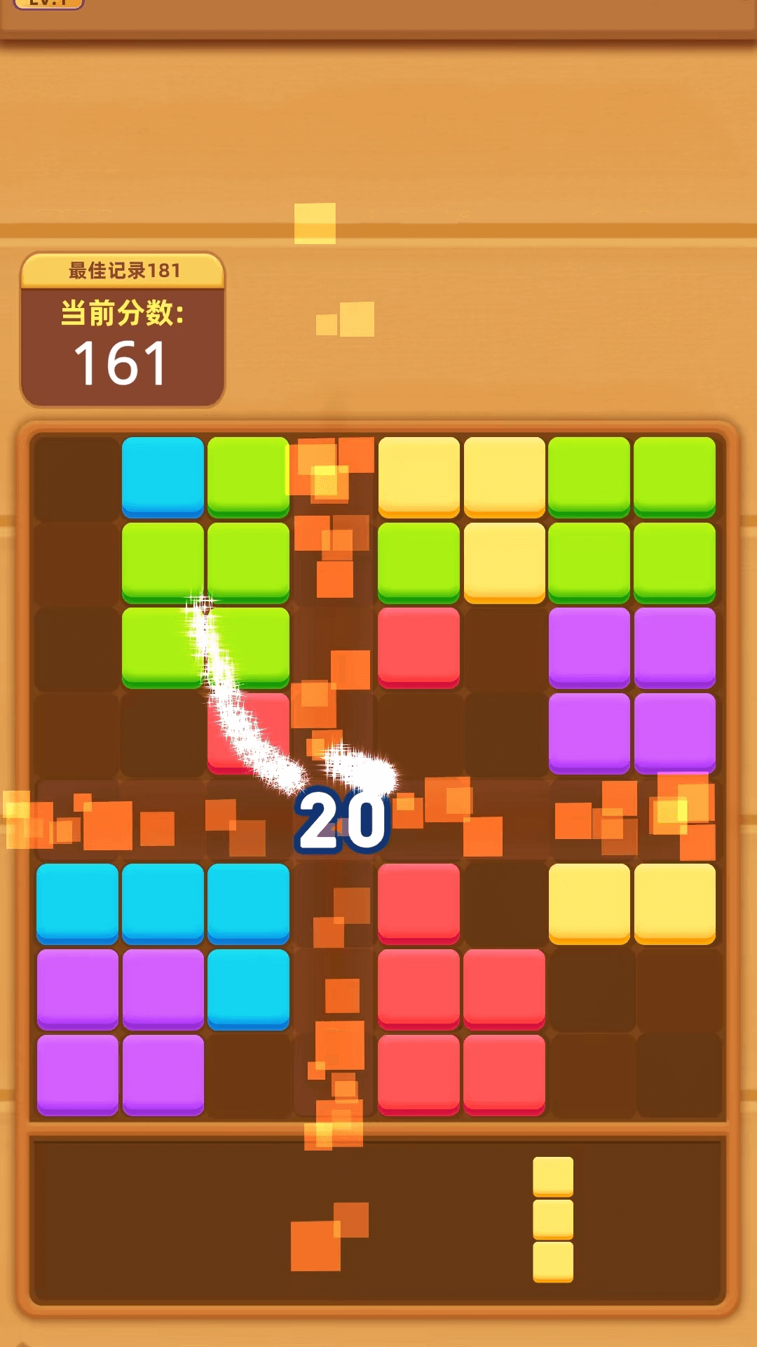 1.通过拖动方块,使相同颜色的方块排列起来即可消除。