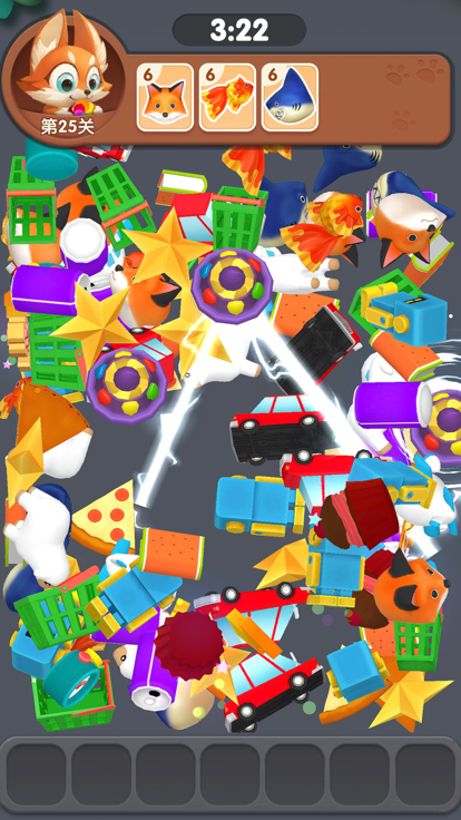 消除达人是一款3D找茬消除闯关小游戏,在消除达人中,玩家需要在杂乱的物品堆中找出三个相同的物品进行消除,在关卡下方有7个方槽可以放置物品,三个相同的物品会自动消除,达到7个还没有三消就算闯关失败