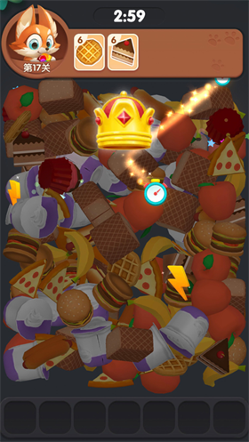 2.下方方槽中有7个方格,点击物品后放入方槽,三个相同的会自动消除