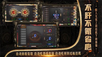 2.打怪爆出无任何限制,能丢、能卖、能交易,自动回收,自动吃货币充值,自动吃材料,挂机巡航。