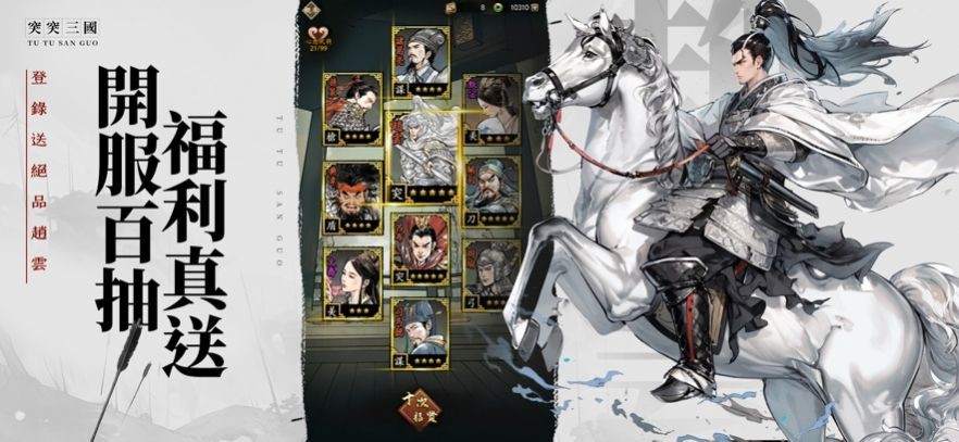 突突三国M是一款水墨风三国策略手游,在突突三国M中,采用全新九宫格对战玩法,玩家需要合理利用兵种克制关系和站位来完成战斗,其中有九大兵种可以任意搭配组合,玩家上线就送100连抽,心动武将轻松拥有