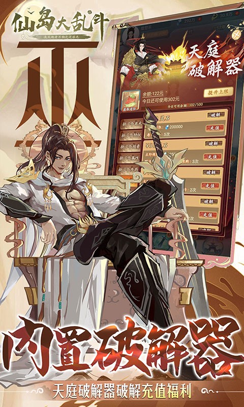 仙岛大乱斗折扣无限是一款国风修仙放置手游,来仙岛大乱斗折扣无限创角就送1000GM余额、8.8W灵玉、8.8W灵石等海量福利豪礼,还有充值券可以无限刷,可以免费激活游戏内充值,每天在线送豪礼,闯关还送1000连抽