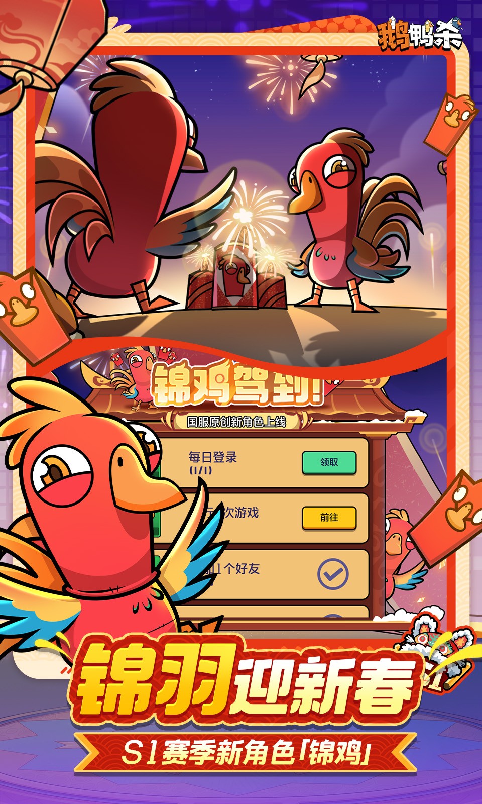 鹅鸭杀S1赛季[锦羽迎春]上线!国服原创角色「锦鸡」登场,新春将至,锦鸡带着红包,陪幸运鹅们来财来财~