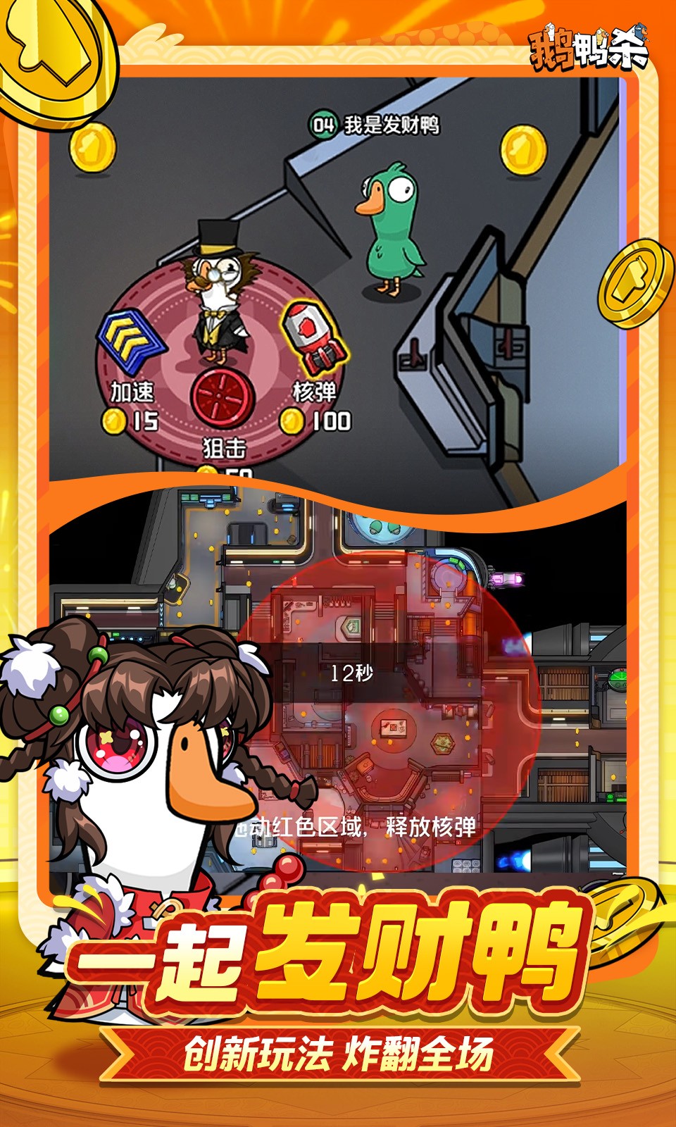 1、基础规则:平民为鹅,杀手为鸭子,在地图自由活动期间鸭子可以直接刀人,刀人有冷却CD,鹅被刀之后会留下尸体(鹅腿)