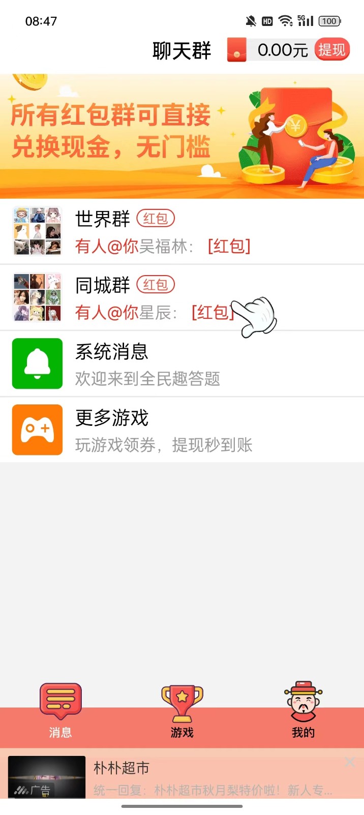 1.有多种可以领取红包的方式,通过答题、红包群、小游戏、广告等都可以领取奖励