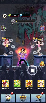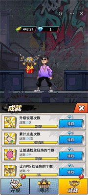 1.通过快速点击屏幕让主角进行说唱,点得越快,粉丝的兴奋值上涨得越快,赚钱得速度也越快。