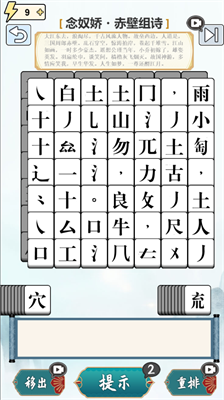 1.通过组合不同的偏旁部首来拼出汉字,最终组合成优美的诗句,考验你的汉字识别能力和语言表达能力。