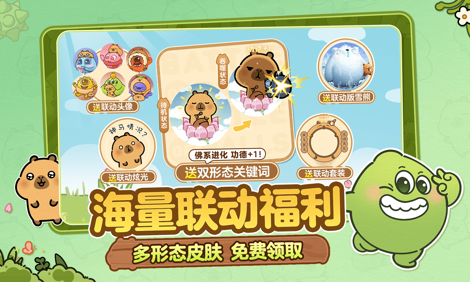球球大作战×卡皮巴拉小黄豚联动1月23日上线!「免费领联动头像+孢子」「佛系豚仔通行证免费领!」百人巨逃模式更可一次性直升4.5颗星!!球宝们好奇新年自己会是什么豚?速来豚格测试!绝对不要错过!