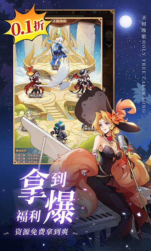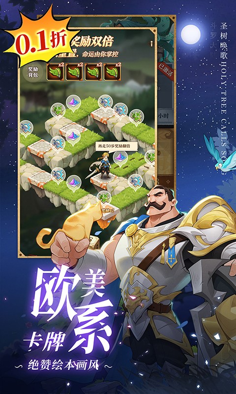 圣树唤歌0.1折是一款手绘风西方神话卡牌手游,在圣树唤歌0.1折中,玩家上号就能领取丰厚福利,开局就送圣树工具直接免费解锁月卡、基金、特权卡,内置跳过功能免费使用,每天签到送充值卡,完成累登送超强SSR