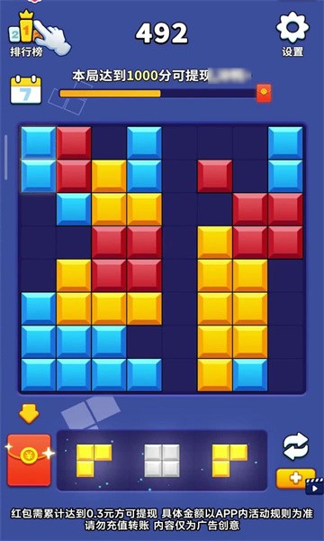 这是一款非常简单的消除游戏,但是真的可以领取红包,玩的越多,领取红包的几率就越大,操作很简单,随时随地上线可以玩,门槛也很低,轻轻松松收获红包和快乐!