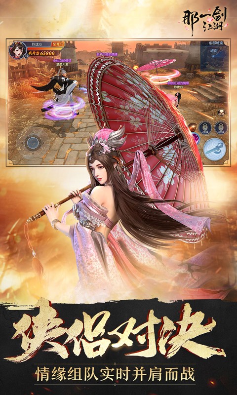 《那一剑江湖》是一款3D MMO 东方绝美仙恋手游。古典风韵的唯美东方大世界,百态万象的浪漫爱情,给你带来最为精致的视听华筵。无职业随心切换,开放式自由交易,让你体验真正无束缚;场面宏大,招式畅爽的对抗战斗,任你纵想极致鲜活交战;新颖酷炫双神兽,美而不同精妙丽服,使你赚足超高回头率;还有海量社交活动,趣味休闲玩法,带你享受群嗨轰趴,与众多挚友一起在高颜值的暖心江湖里肆意畅游。