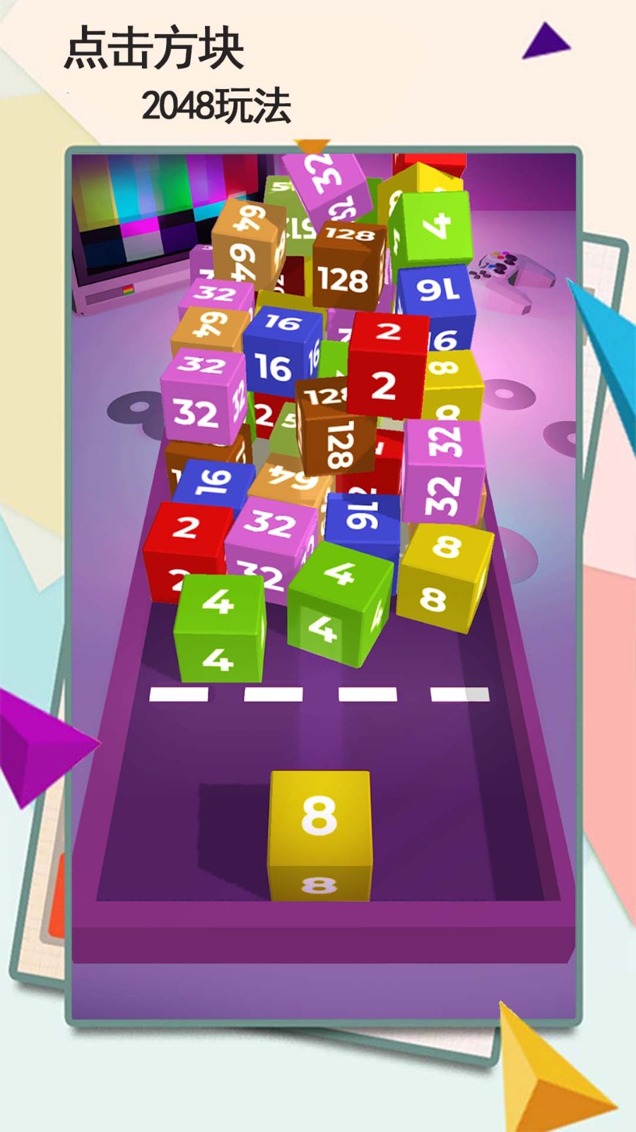 点击方块是一款3D版本的2048合成小游戏,在点击方块中,玩家要将带有数字的方块进行弹射合成的,立体方块的合成更具有挑战性,方块之间会堆叠起来,在合成过程中会变的非常烧脑,全新模式十分新颖有趣