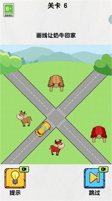 1.画线帮助奶牛回家,准确绘制路线,避开场景中的各种障碍,顺利完成烧脑挑战,解锁新的内容。