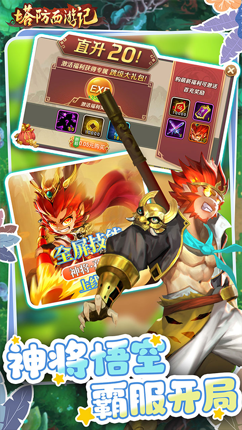 塔防西游记手游是一款西游题材的回合制卡牌手游,塔防西游记手游保留经典玩法的基础上突破传统模式,在游戏中所有装备全部靠打,上线就送绝版冰雪情缘时装、无限抽奖,100级赠送688充值,全场充值0.05折登录签到代金券。