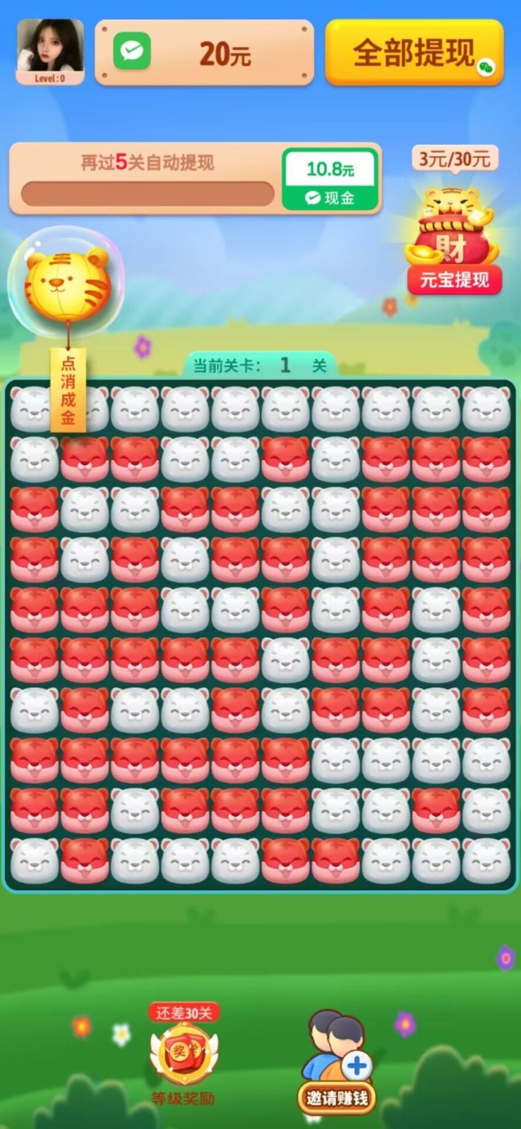 1.在游戏中,玩家的等级越高提现的金额也就越多,闯关完成任务就能升级