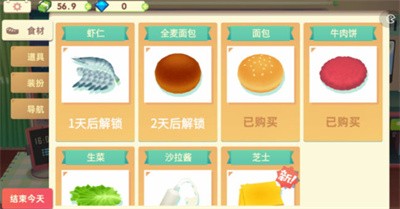 1.从基本的经典汉堡开始,逐步解锁更多食材和食谱,完成一系列订单,赚取足够的收益升级餐车。