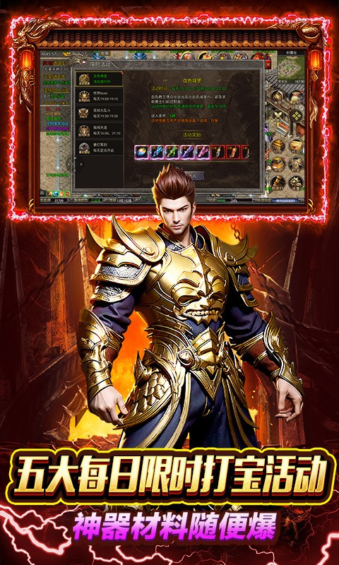 (1)上线超高攻速!经典复古!最初体验!至深情怀! (2)所有野外地图全部无限制进入!绝对自由的版本! (3)爆率超高!小怪也能爆终极!拼的是人品!玩的是激情! (4)独有的神戒系统,园你当年得神戒霸全服大梦! (5)神器神甲超炫技能,点燃战斗激情,带你重拾往日流金岁月! (6)装备绝对保值!高阶装备能合成能升阶!终极能爆能合绝对良心! (7)没有任务!没有任务!没有任务!重要的事情说三遍!轻松激情!