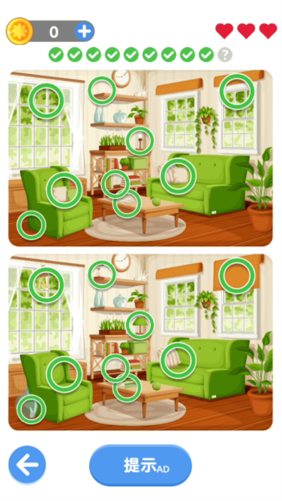 2.挑战你的时间记录,尽量在规定的时间内找出所有茬点,提高游戏难度和乐趣,让你更加舒爽。