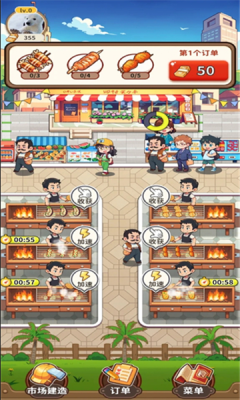 1.游戏背景设定在一个热闹的露天市场,你的烧烤摊周围有各种不同类型的摊位和顾客。