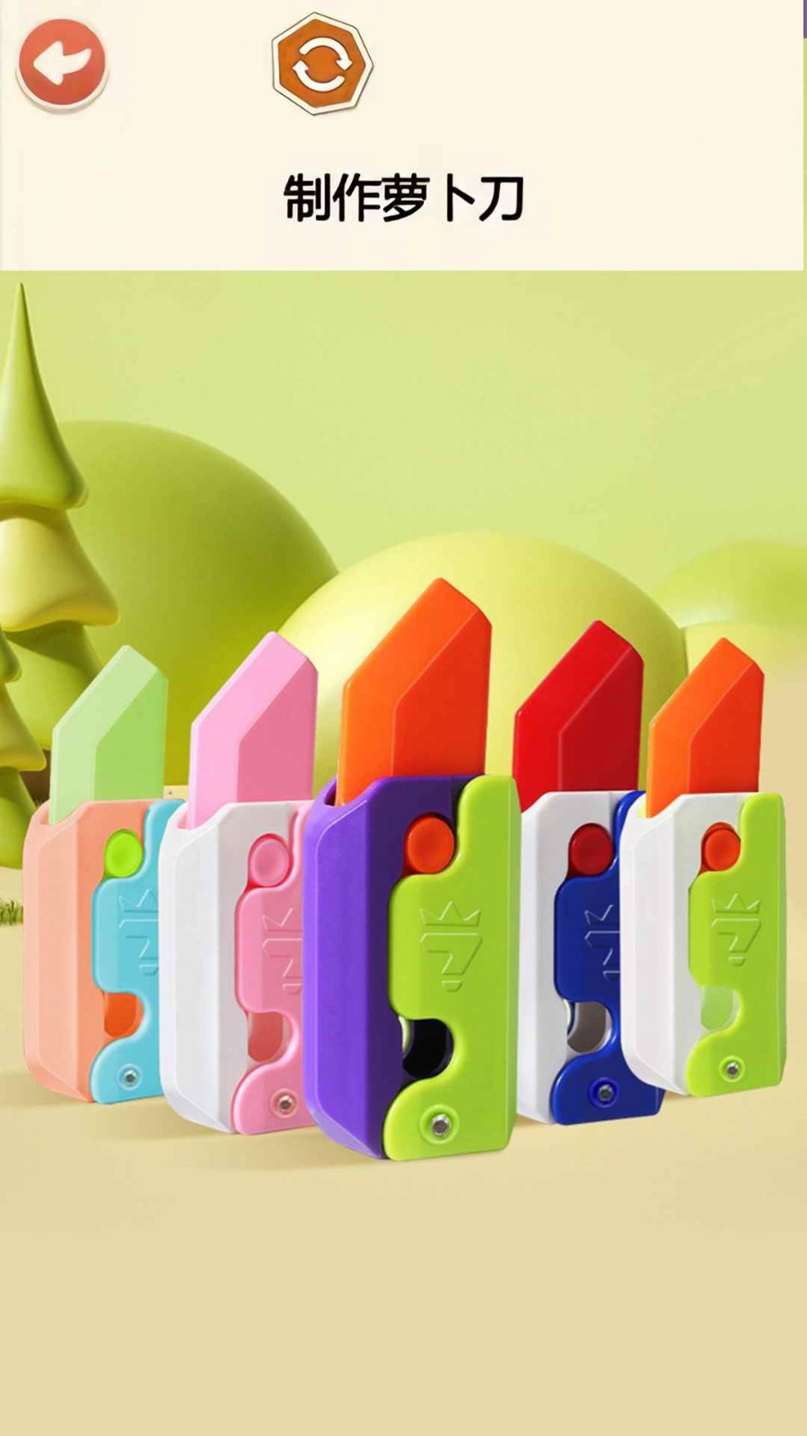 萝卜刀DIY解压游戏是一款休闲解压题材手机游戏,在萝卜刀DIY解压游戏内开启趣味解压之旅,制作我们的萝卜刀以及各种道具,简单易上手的游戏操作,展现我们的思路,尽情的享受更多的乐趣,游戏非常的给力,成功的解决我们的诸多难题,成功进行通关!