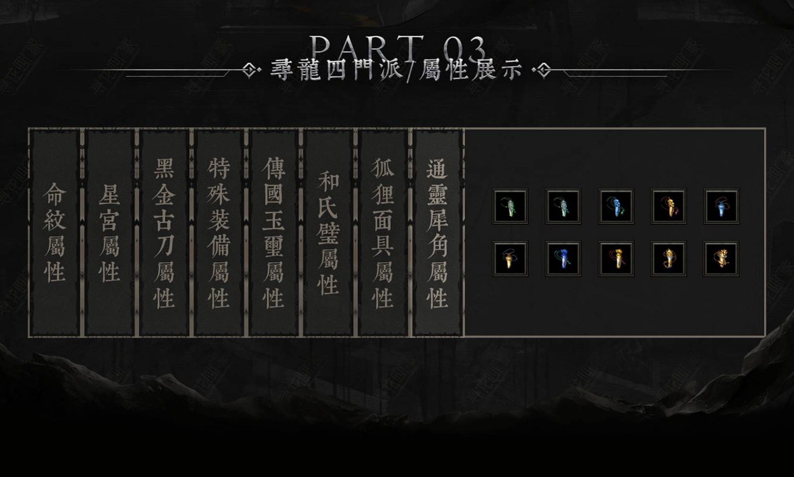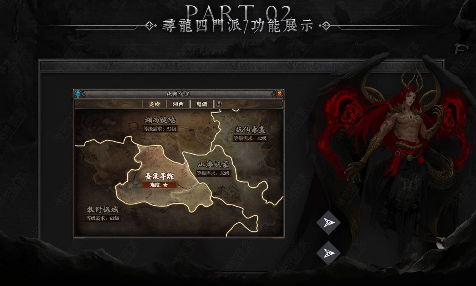 3.特色老九门玩法,龙脉、浮屠上百套流派组合,各个属性流派相生相克