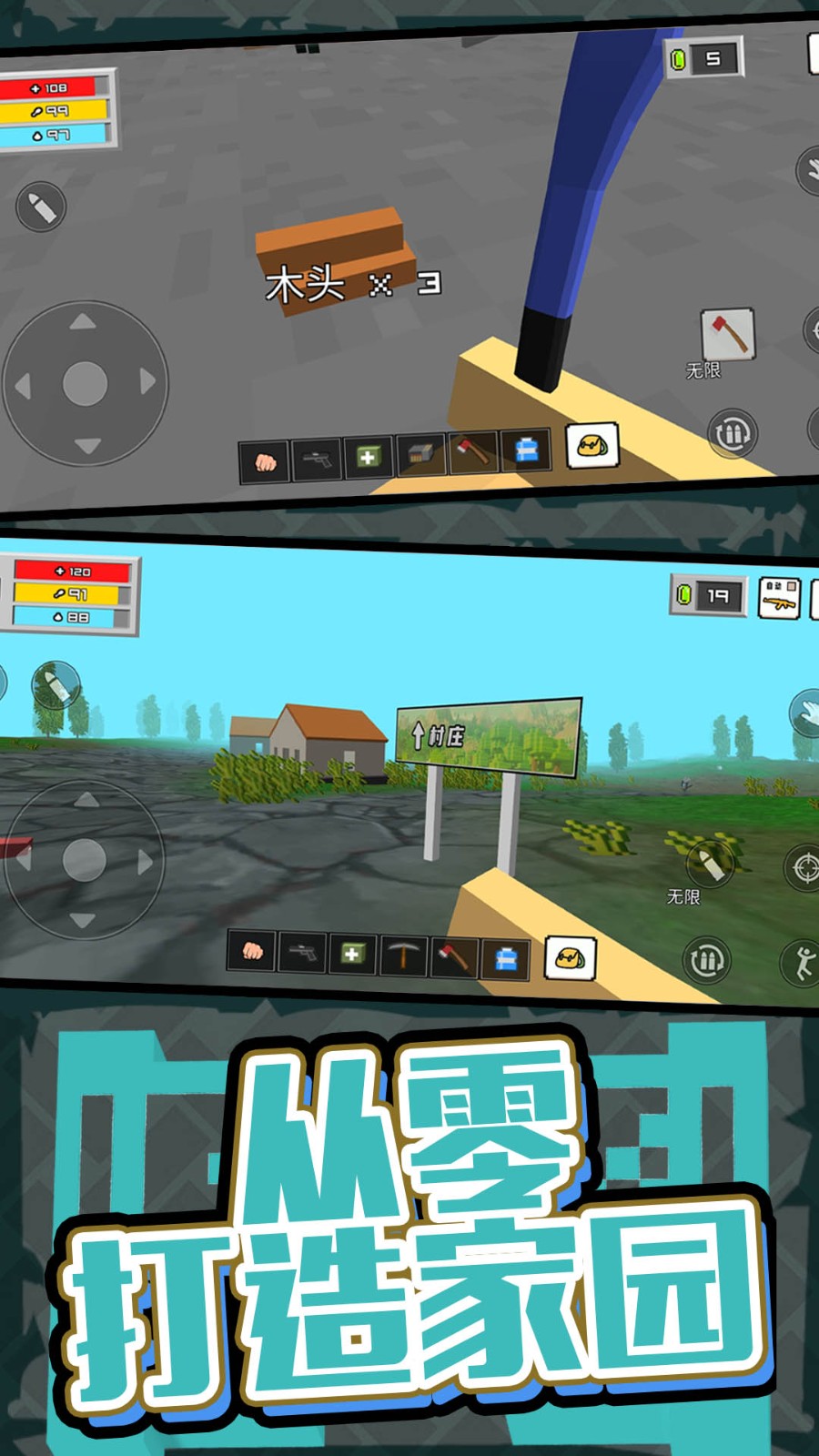 1.从零开始的沙盒生存,玩家需要自己建造家园,打造武器,完成生存