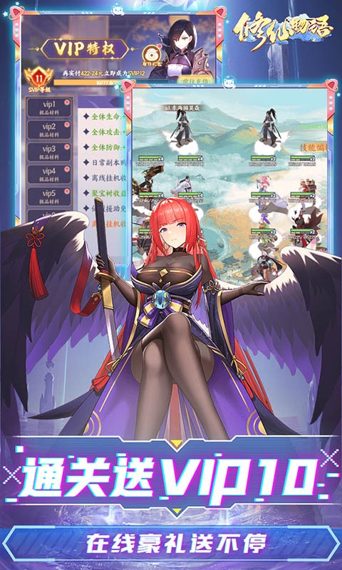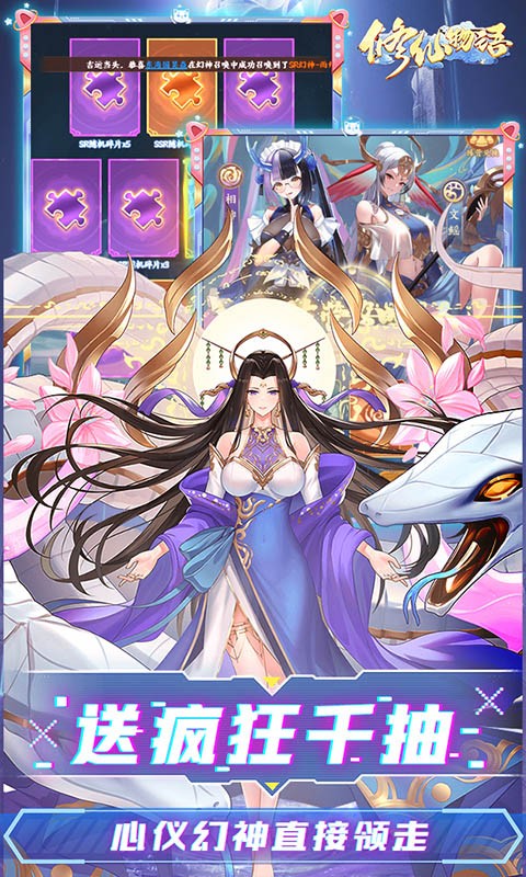 《修仙物语》上线送幻神九尾、通关送满级VIP10。累积登录送UR神嫦娥,流水的主C铁打的辅助,这样美貌动人的嫦娥姐姐你心动了吗?在线豪礼送不停,累计登录免费110抽!疯狂千抽,心仪幻神直接领走!